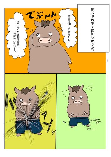 お久しぶりです。 初めて間もないブログすらまともにできない家畜です。 すっげえ太りました。 あとカフェイン過剰摂取で死を覚悟した日があったのでそのことをいつか漫画に…できる………かな…………………。 ※効果はまだ出ていない